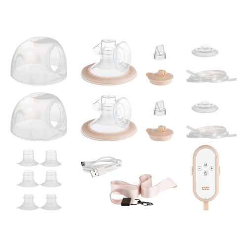 Sada obsahuje: napájecí kabel typu C, ovládací zařízení odsávačky mléka (tělo odsávačky), silikonová membrána 2 ks, zpětný ventil 2 ks, trychtýř o velikosti 27 mm 2 ks, zásobník na sběr mléka 2 ks, uzávěr membrány 2 ks, silikonová hadička 2 ks, silikonové trychtýřové vložky 6 ks (3 různé velikosti: 2x 19mm, 2 x 21mm, 2x 24mm), šňůrka k zavěšení odsávačky, nástavec na ramínko podprsenky 2 ks.