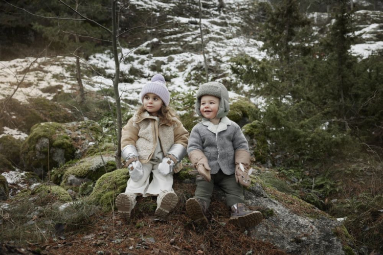 Tato kombinace materiálů je příjemná a hřejivá. Čepice má bambuli.