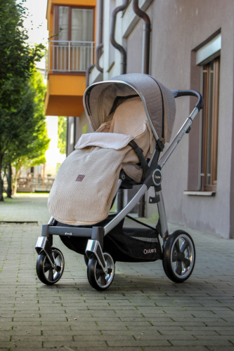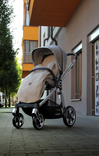Fusak nejen do sportovního kočárku, ale i hluboké korby v délce 105 cm. Zipy po obou stranách, možnost stáhnutí v oblasti hlavy, velice pěkně drží ve sportvní verzi - možnost nasazení na zádovou opěrku (pokud to typ kočárku umožňuje). Uvnitř bavlna s vypodložením, u nožiček omyvatelná podšívka pro snadnou údržbu.