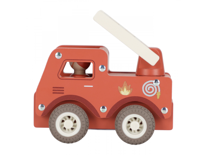 S tímto dřevěným hasičským autem budete vždy připraveni vyrazit do akce! Vozidlo je vybaveno výsuvným žebříkem a odvážným hasičem v podobě dřevěné figurky. Díky robustní konstrukci a gumovým pneumatikám je jízda plynulá a bezpečná na každém povrchu.