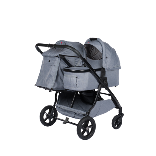 Začněte se dvěma hlubokými díly, dvěma autosedačkami nebo dvěma sedacími částmi vedle sebe na rámu kočárku. Můžete ale také kombinovat kteroukoli z těchto možností, měnit jednu stranu za druhou, používat jednu autosedačku s jednou sedací částí, jeden hluboký díl s jednou sedací částí nebo jakkoliv vy a vaše děti potřebují.