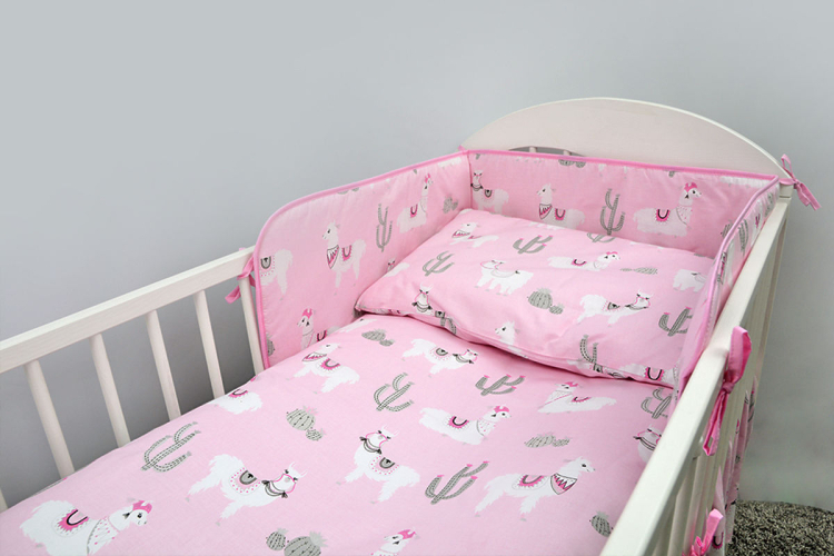 Krásný dvoudílný nebo trojdílný set povlečení do dětské postýlky s motivem oblíbených lam. Růžové provedení působí velmi příjemně a půvabně.