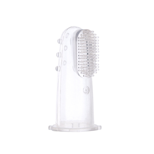 Silikonový kartáček je určen k mytí prvních zoubků dítěte a masáži dásní. Doporučujeme k použití i u dětí, které ještě zoubky nemají. Konstrukce kartáčku umožňuje vyčištění a masáž těžce dostupných míst. Speciální výstupky důkladně masírují dětské dásně. Učí dítě správné zubní hygieně. Umožňuje rodičům bezpečné čištění, bez obav z poškození citlivých dětských dásní, ke kterému může dojít při použití klasických zubních kartáčků a tím dítě odradí od čištění zoubků. Kartáček navlékněte na ukazováček (viz obrázek) a jemně čistěte a masírujte dětské dásně.