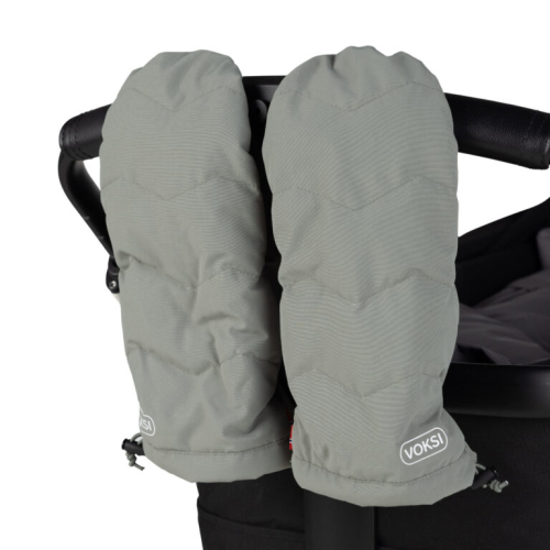 Rukavice jsou navržené tak, aby se vešly na všechny ruce i typy kočárků. Připevněte palčáky ke kočárku tak, že na špičce rukavice otevřete suchý zip a umístíte jej kolem rukojeti. Jednoduchou šňůrku na straně lze zatáhnout rukavice, aby obepnuly zápěstí a nedostala se do nich zima. Kombinujte a slaďte barvy rukavic s fusaky a dětskými botičkami Voksi.